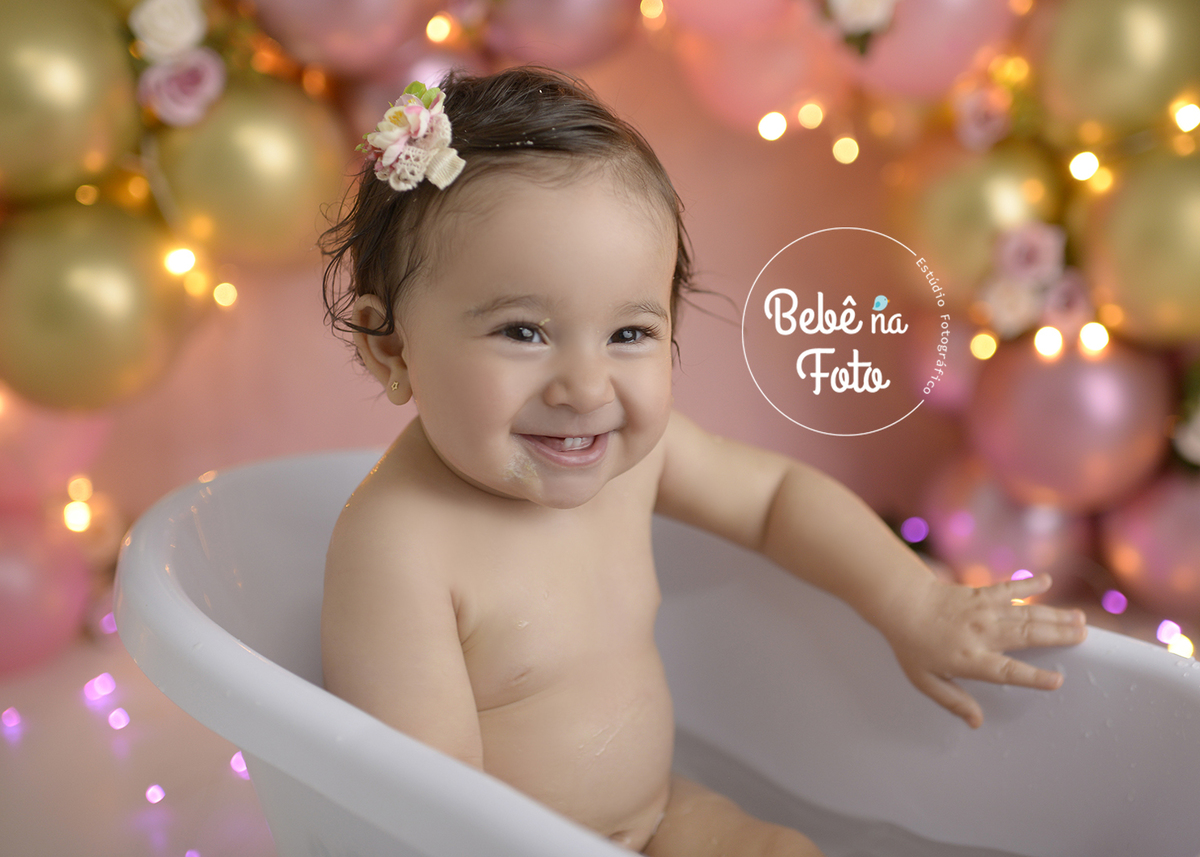 E sábado foi dia de smash e a Agatha estava radiante, cheia de poses, adorou a brincadeira de destruir o bolo.