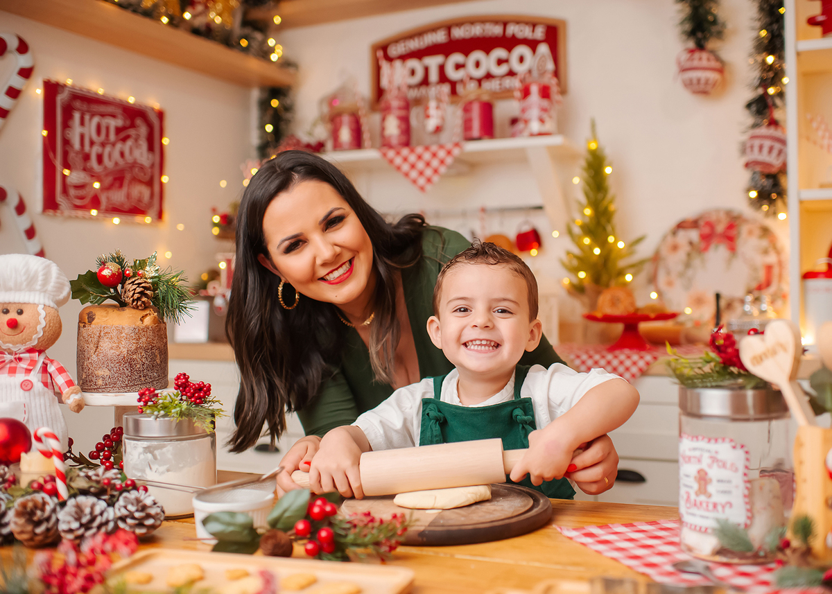 Esse ano escolhemos a temática "Biscoitos de Natal" para os nossos ensaios e montamos uma linda cozinha temática do Papai Noel.