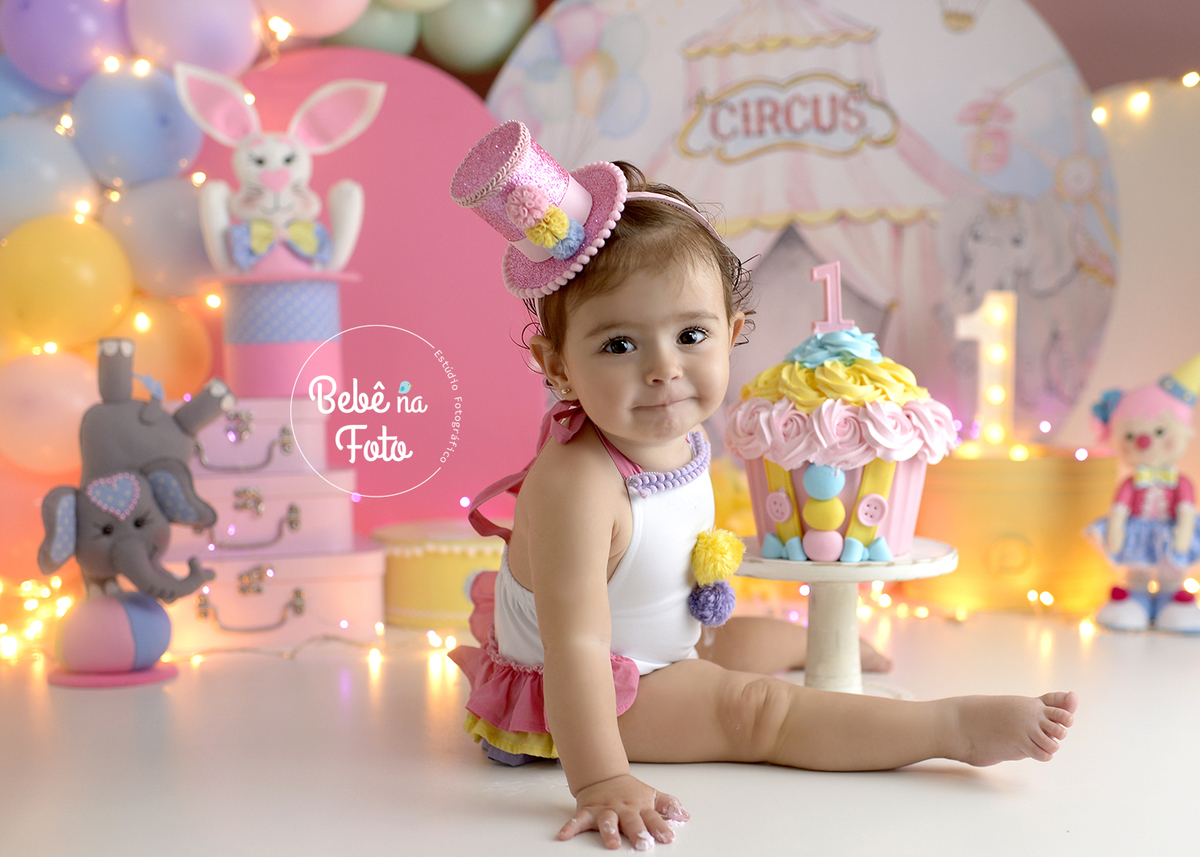 smash the cake circo rosa fotografia book 1 aninho cachoeirinha RS porto alegre RS fotógrafa referência infantil bebe na foto