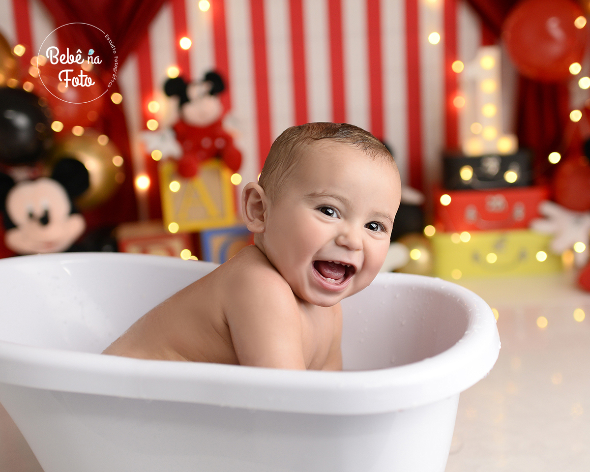 E para comemorar o 1º Aninho do Vicente uma lindo smash the cake do Mickey