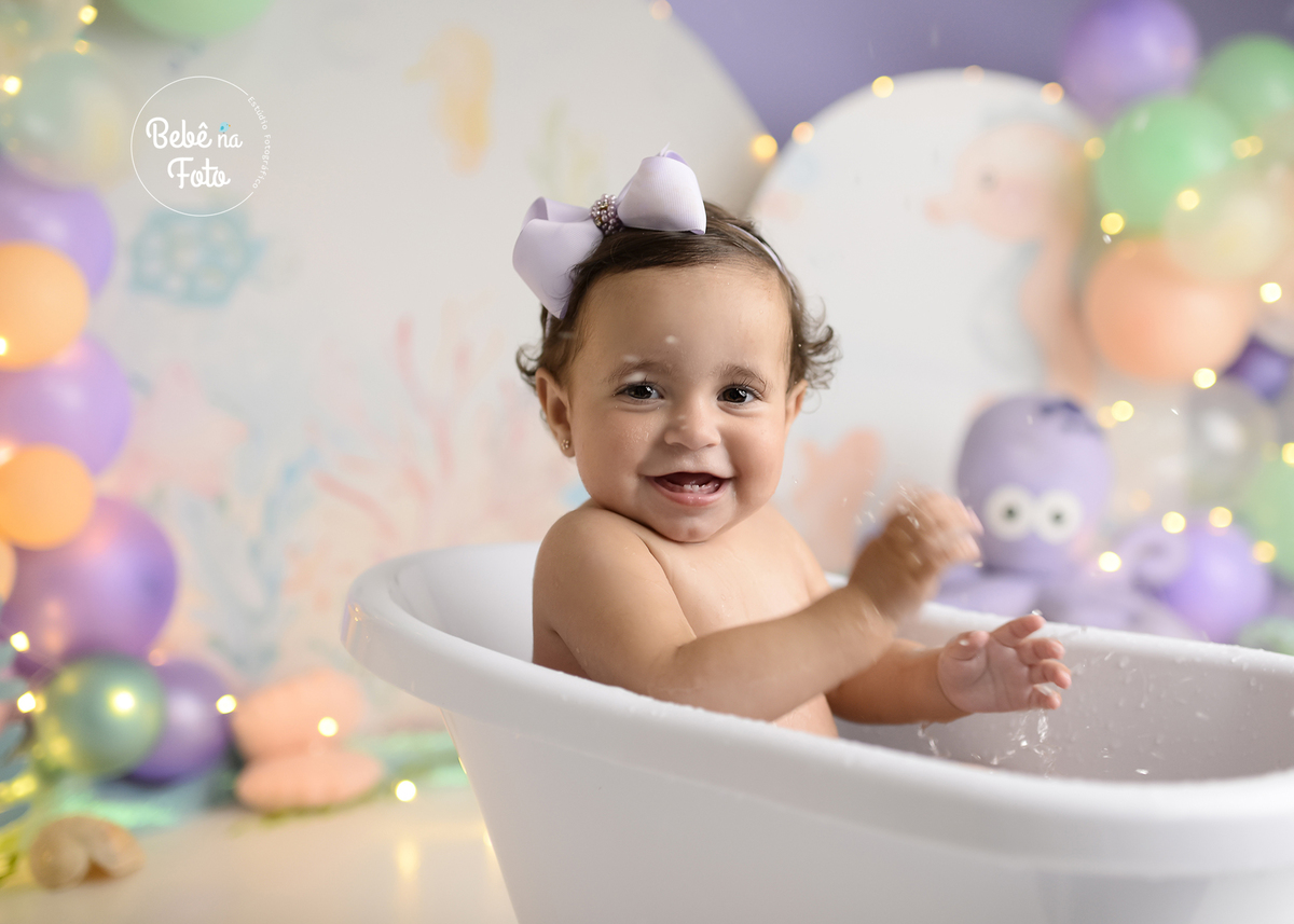 E para comemorar o 1º Aninho da Elena e mamãe escolheu o tema de sereia para seu smash the cake